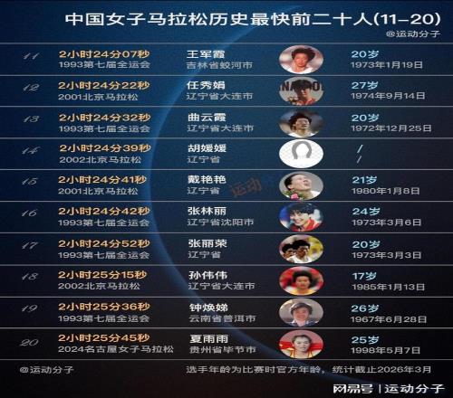 現(xiàn)役僅兩人上榜,盤點中國女子馬拉松歷史最快前20人