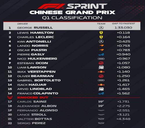 2026F1中國(guó)站沖刺排位賽今天下午結(jié)束爭(zhēng)奪,在一練表現(xiàn)亮眼的梅奔車(chē)隊(duì)徹底不演了,拉塞爾以1分31秒520獲得沖刺賽的桿位,安東內(nèi)利排在第二,諾里斯位列第三。諾里斯與拉塞爾的差距達(dá)到了0.621秒,今年的梅奔兩臺(tái)車(chē)實(shí)在是太快了……第四到第十依次是漢密爾頓、皮亞斯特里、勒克萊爾、加斯利、維斯塔潘、比爾曼、哈賈爾。