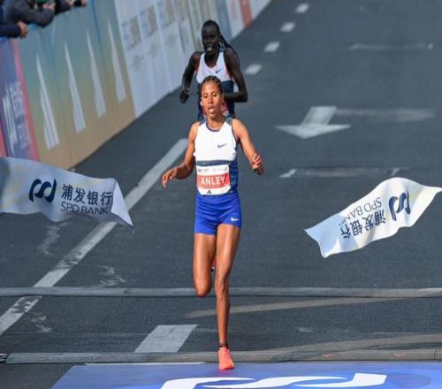 2026年3月15日,上海東方體育中心,女子組的第一名則花落來(lái)自埃塞俄比亞的阿斯馬雷奇·安利,成績(jī)是1:07:01。澎湃新聞?dòng)浾?朱偉輝 圖