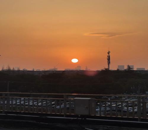 拍飛機,也看到了日出。(圖/范坤 攝)