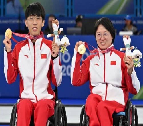 蔡佳云在本屆冬殘奧會上獲得3枚金牌,是中國代表團首金獲得者,也是獲得金牌數(shù)最多的選手。王蒙和隊友楊金橋攜手鏖戰(zhàn),奪得冬殘奧會歷史上首枚輪椅冰壺混雙金牌。
