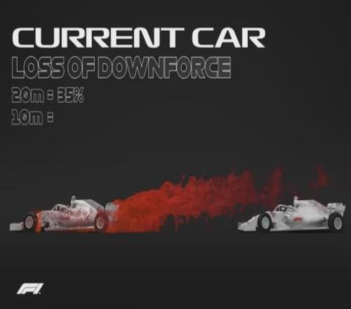 第二項(xiàng),是全面調(diào)整賽車性能規(guī)則,讓觀眾最想看到的超車變得更容易。2022年,F(xiàn)1啟用了全新的地面效應(yīng)賽車規(guī)則,核心目標(biāo)就是解決困擾賽事多年的“前車亂流導(dǎo)致后車無(wú)法跟車”的難題,簡(jiǎn)而言之就是讓后車可以更輕松地貼近前車,實(shí)現(xiàn)超車。