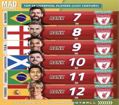 最近MADFOOTBALL整理了一份21世紀利物浦12大球員榜單。杰拉德、薩拉赫、范戴克、蘇亞雷斯這些名字都在前12之內(nèi),歐文、托雷斯、阿利松也都沒有缺席。真正能把這份榜單撐出話題的,不只是哪些人入選,而是同樣都在安菲爾德留下過高光,有人穩(wěn)穩(wěn)站在最前面,有人卻被壓到更靠后的位置!