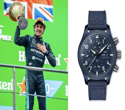 車手喬治·拉塞爾佩戴IWC萬國表飛行員系列自動腕表41喬治·拉塞爾特別版(左),IWC萬國表飛行員系列自動腕表41喬治·拉塞爾特別版(右)