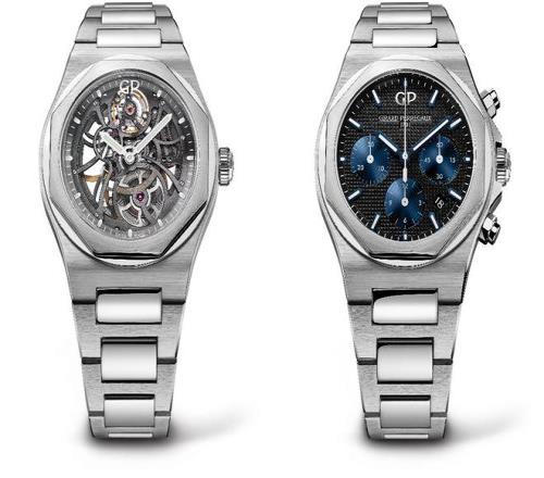 GP芝柏表Laureato Skeleton鏤空腕表(左),GP芝柏表桂冠系列42毫米計時碼表(右)