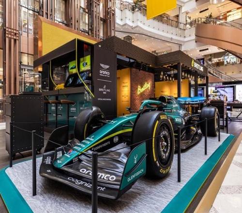 瑞士高級制表品牌百年靈于上海新世界新丸中心打造了"F1馭時賽道"限時概念空間。作為阿斯頓·馬丁及阿斯頓·馬丁F1車隊官方時計合作伙伴,百年靈將限時空間化身為一個沉浸式體驗之地。整體設(shè)計深度融合了百年靈標(biāo)志性的工業(yè)閣樓風(fēng)格與賽車運動的美學(xué),以其特色的復(fù)古磚墻為背景、黑色鋼結(jié)構(gòu)為框架,主色調(diào)則巧妙融合了品牌標(biāo)志性百年靈黃與阿斯頓·馬丁的經(jīng)典賽車綠,視覺碰撞間盡顯摩登復(fù)古的競速格調(diào)。為了讓參觀者身臨其境,百年靈還在現(xiàn)場設(shè)置多項互動裝置,卡萊拉賽車游戲可體驗加速、過彎與沖刺的駕駛操控感,同時坐進(jìn)虛擬影像影棚的賽車座椅,即可由AI生成專屬車手形象。