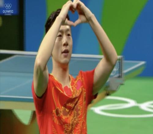 ■圖 / 2016 里約奧運(yùn)乒乓球男單決賽,馬龍奪得冠軍后,雙手比「心」繞場半周(圖片來源于網(wǎng)絡(luò))
