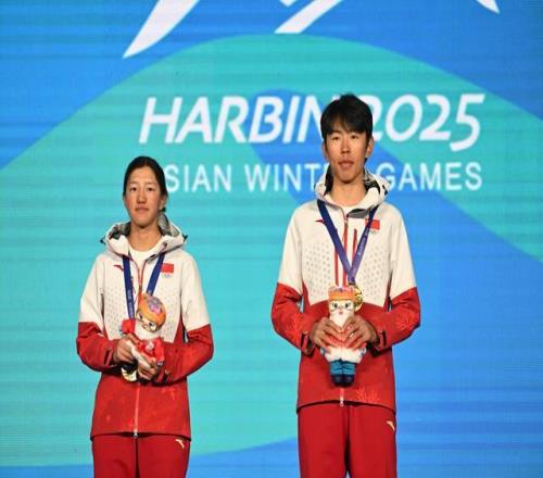 次旦玉珍和隊友布魯爾奪得2025哈爾濱亞冬會滑雪登山混合接力金牌。