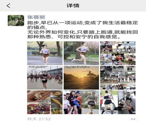 但“日?!辈⒉灰馕吨捌降?。十年前,她開始跑步,起初是為了健康,后來慢慢發(fā)現(xiàn),跑步成了她生活的“錨點(diǎn)”——因?yàn)橐缙鹋懿?,所以必須早睡;因?yàn)橐艿酶p盈,所以開始注意飲食;因?yàn)榕苋镎J(rèn)識(shí)了同頻的朋友,社交圈也變得更加積極正向。