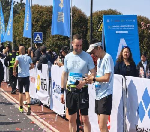 今天,這位愛上中國(guó)跑步氛圍的丹麥人,如約站上了蘇州太湖數(shù)字半程馬拉松的起點(diǎn)。