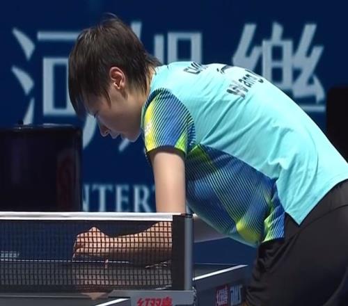 王曼昱離場換了一件球衣回來繼續(xù)作戰(zhàn)。王曼昱經(jīng)過雙方39拍的對決,迫使橋本回球下網(wǎng)得分。王曼昱打得很耐心,取得3比0領(lǐng)先。橋本帆乃香連得2分。橋本帆乃香對王曼昱的研究很精細(xì),多次算準(zhǔn)王曼昱的落點,通過變線得分。王曼昱也在調(diào)整,通過變化得分,打到了9比5領(lǐng)先。